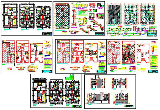 Multi Family Layout plan dwg file.Multi Family elevation detail, layout with in-out way,parking area,garden,hall, stage,seating area,Multi function
