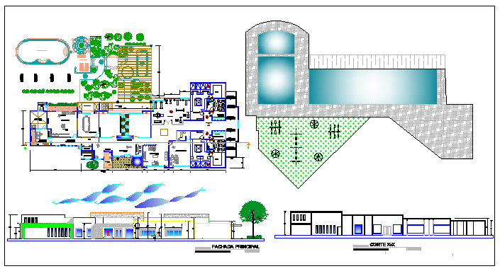 Hotel Design and lay-out detail dwg file with entry way,garden view,walking way,circle,