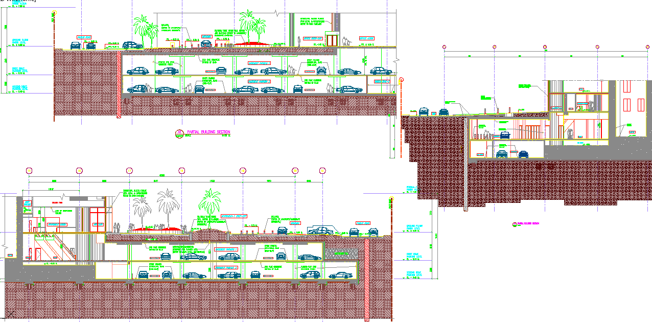 Car Parking dwg file. The architecture section plan of car parking with much more detailing in autocad format.