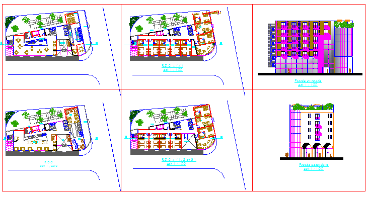Plan and elevation design of restaurant dwg file with entry way,table view,washing area,hall,admin office,bedroom,restaurant,seating area,garden view,door and window