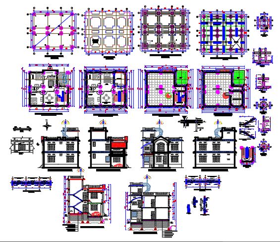 Building layout plan Dwg file.with elevation of various building, glass building, layout plan of a building etc