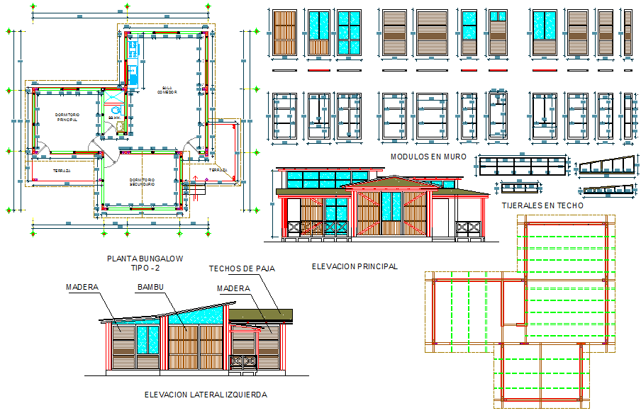 Bungalow in the Jungle CAD Drawing with Plan and Elevation Details