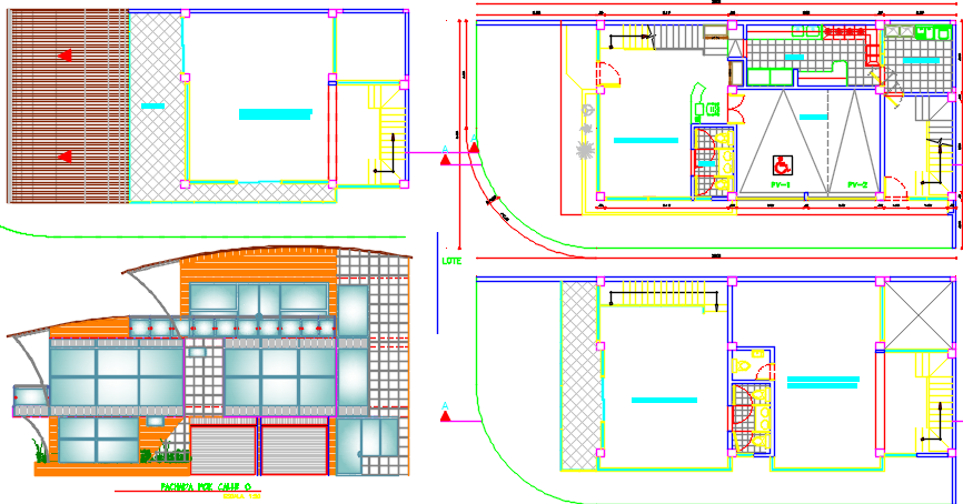 bungalow dwg file,layout plan and elevation of a big bungalow , furniture detailing in auto cad format