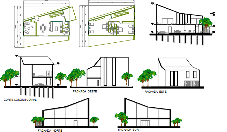 cottage dwg file, elevation design of a small cottage house, accommodation for up to 4 to 8 persons, and small restaurant area
