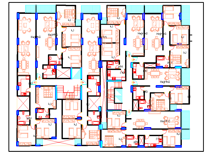 Apartment Layout plan dwg file. Find here layout plan of 3 bedroom, drawing room and kitchen along of furniture detailing.