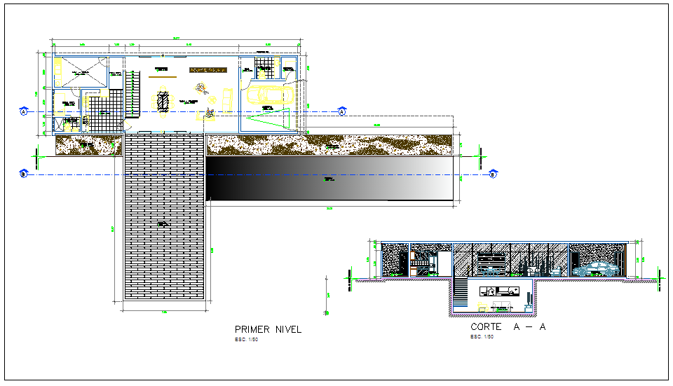 House design on beach dwg file with in-out way,garden,pool,parking area,terrace, kitchen,washing area,dining area,hall,bedroom,T.V room,entry way in House design on beach.