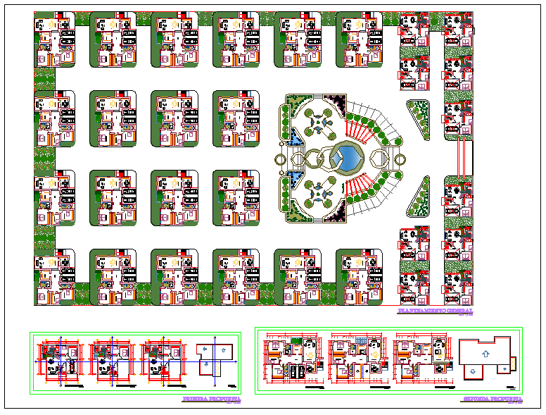 Design of family house dwg file with entry way,garden view,parking area,hall,kitchen,