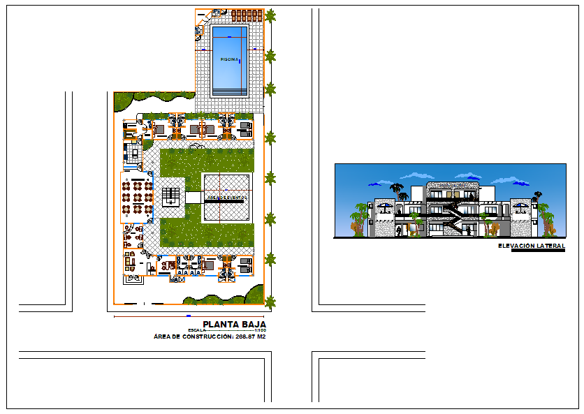 Hotel Design dwg file with i n-out way,pool,washing area,bedroom,kitchen,restaurant,