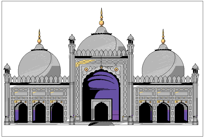 Famous architecture work of mosque dwg file with main enters with step,spherical