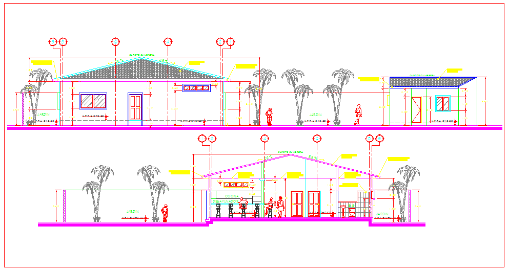 Design of house on beach dwg file with entry way,garden view,kitchen,washing area,door and window view,view of terrace,dimensional view of area of house.