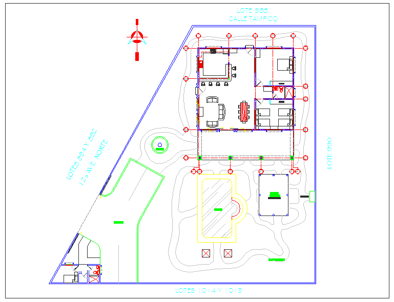 Home plan design dwg file with park,walking way,washing area,pool,seating area, table view,kitchen,area distribution,entry way,bedroom.