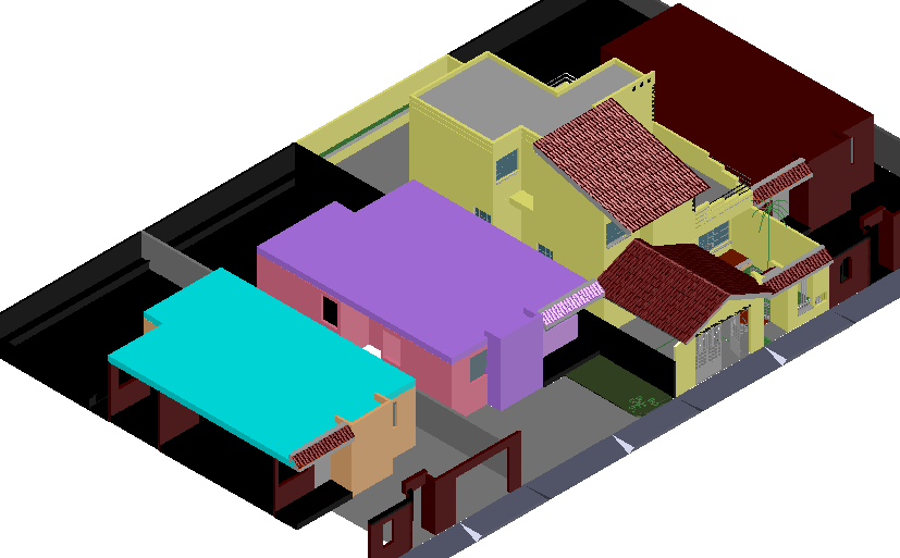 House Design in 3d view dwg file with entry way,ground floor view,column and beam
