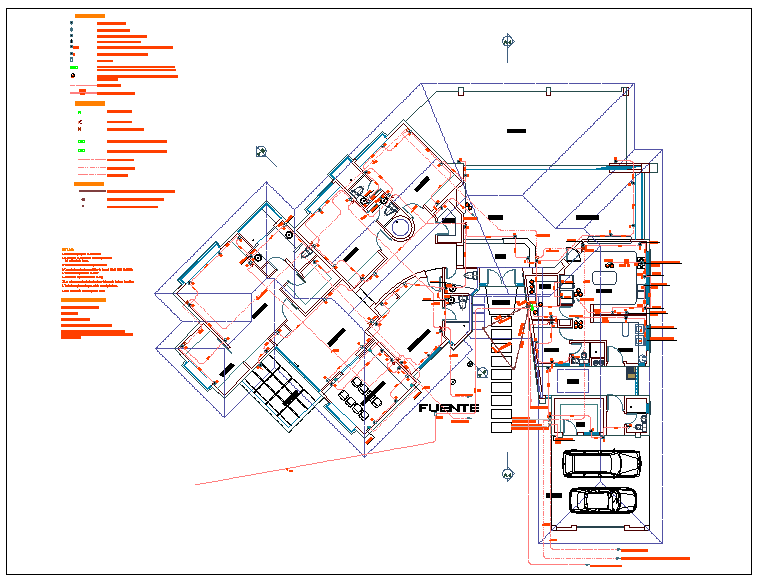 Electrical detail for family housing plan dwg file with electrical line view in home plan