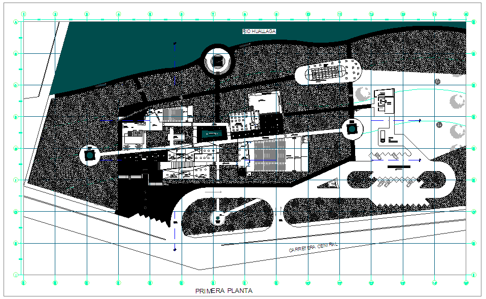 Plan view of cultural center file of autocad with view of walking way,hall,cafe area, lobby,auditorium,dining area,parking area and garden view,flooring view.