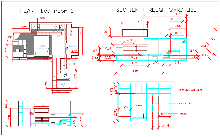 Interior design of bedroom and wardrobe autocad file with detail of bedroom view