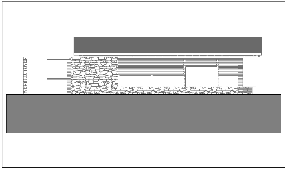 Construction Design with elevation of building dwg file with ground floor view support beam and stone type wall design.