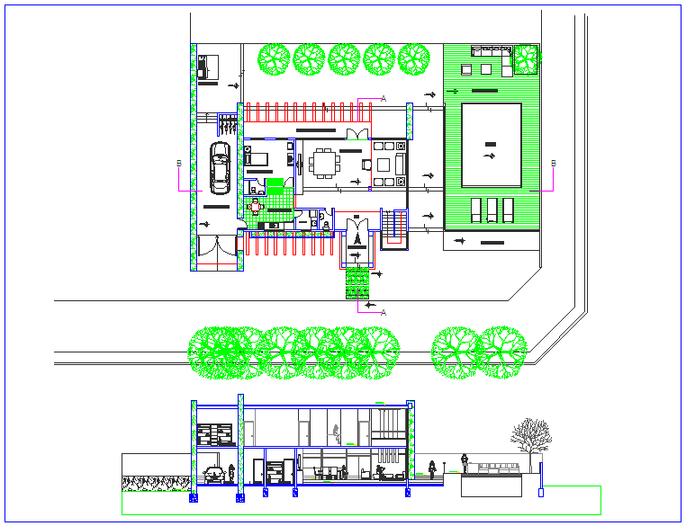 Living room for single family autocad file with parking view,garden, kitchen,washing area,dining room,hall,garage,view of door window,beam,living room view in elevation.