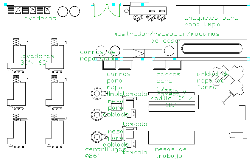 Laundry Furniture AutoCAD DWG File with Layout and Equipment Details