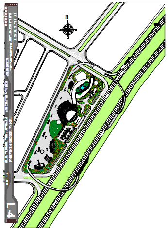 business convention center dwg file, layout plan of a business center , greenary, landscaping, big convention center