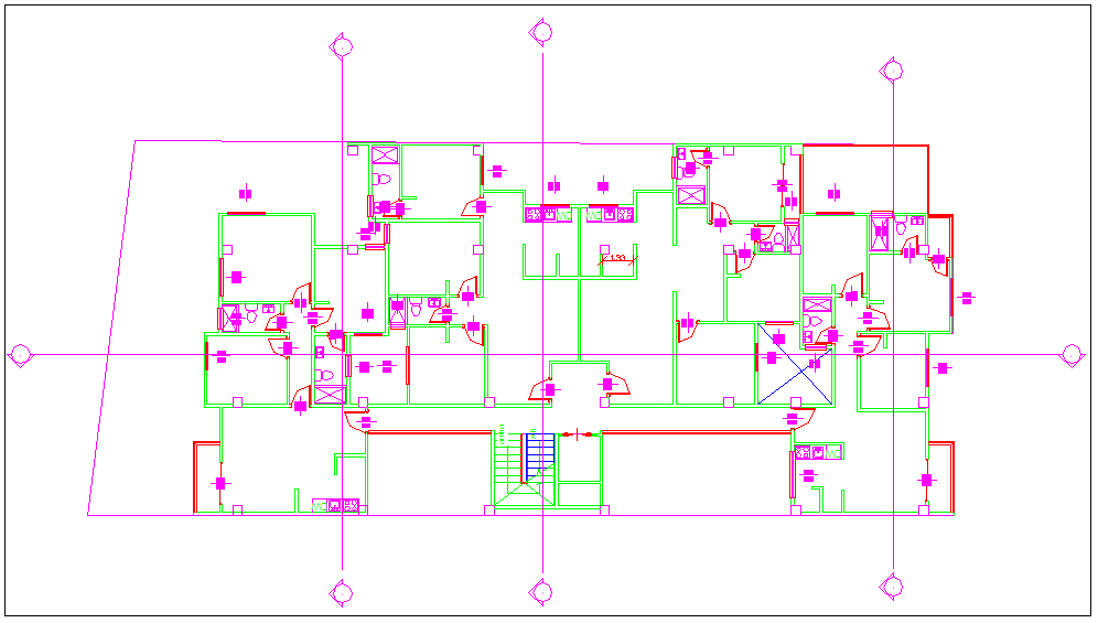 Distribution view of area for bungalows dwg file with entry way,washing area,room, division of area with wall top view.