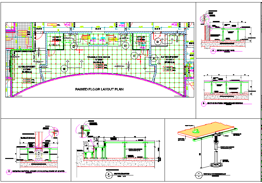 Layout plan of office design with furniture detailing, also have toilet plan, wall construction plan, structure plan and section plan of Office project..