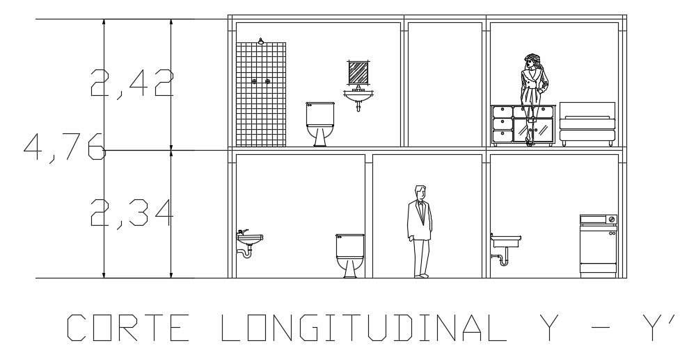 The left side section view of the 10x7m house building is given in this file. This is two story house building. On this ground floor, the living room, car parking, dining area, kitchen, and common bathroom is available. On this first floor, the master bedroom with the attached toilet, kid’s room, guest room, and common bathrooms are available. For more details download the AutoCAD drawing file from our website. Thank you for downloading this Cad file from our cadbull website.