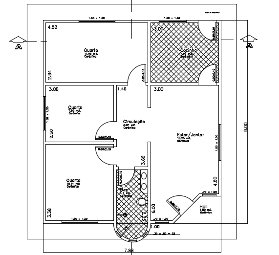 8x9m architecture 3bhk house plan 2D drawing is given in this file. This is a single story house building. On this floor plan, the living room cum dining area, kitchen, hall, corridor, master bedroom, kid’s room, guest room, and common bathroom is available. For more details download the AutoCAD drawing file from our website. Thank you for downloading this Cad file from our cadbull website.