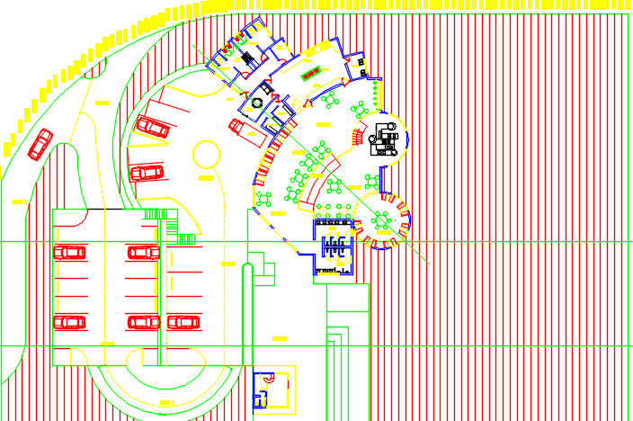 Hotel dwg file , layout plan of a hotel,top view design, car parking area, seating area, restro etc