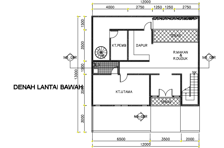 12x13m duplex house plan 2D AutoCAD drawing is given in this file. This is a two story house building. On this ground floor, the living room, kitchen, dining area, and common bathroom is available. For more details download the AutoCAD drawing file from our website. Thank you for downloading this Cad file from our cadbull website.