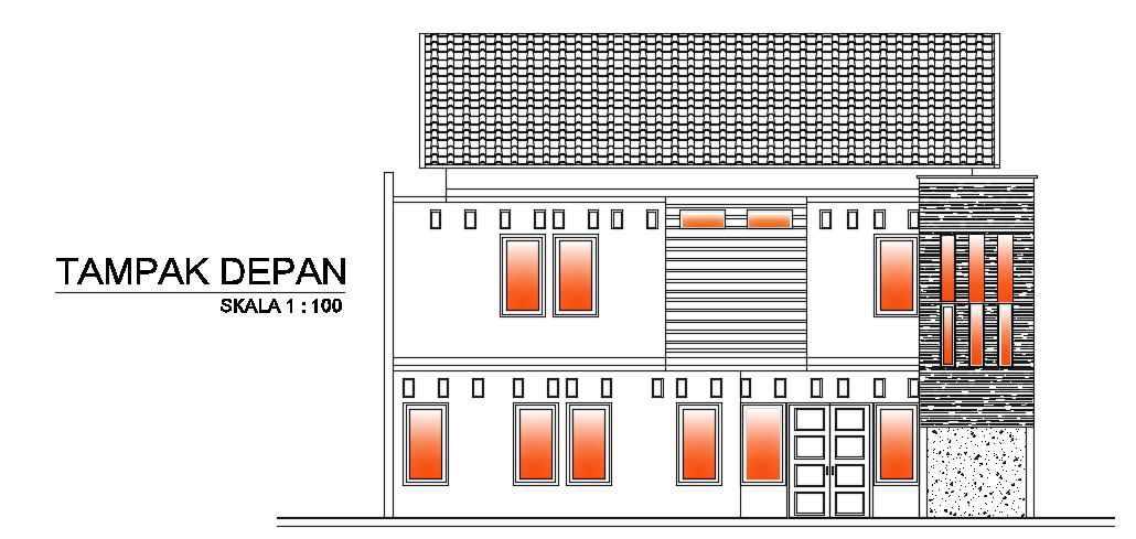 The front elevation view of the 12x13m duplex house building drawing is given in this file. This is a two story house building. On this ground floor, the living room, kitchen, dining area, and common bathroom is available. For more details download the AutoCAD drawing file from our website. Thank you for downloading this Cad file from our cadbull website.