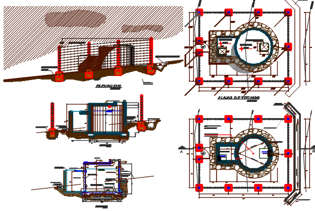 plan reservoir dwg file, layout plan of a plant and elevation details of a reservoir , circular concept in auto cad format