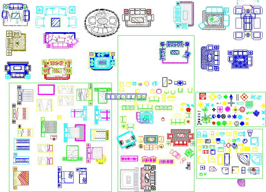 Furniture Blocks dwg file. sofa-set, dining table, chair, living room furniture, single bed and double bed of Furniture Blocks