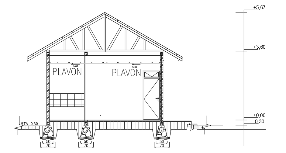 The right side cut section view of the 6x12m house building is given in this file. The total height of the building up to roof level is 5.67m. This is a single story house building. On this floor plan, the living room, kitchen, dining area, master bedroom with the attached toilet, kid’s room, guest room, and common bathroom is available. For more details download the AutoCAD drawing file from our website. Thank you for downloading this Cad file from our cadbull website.
