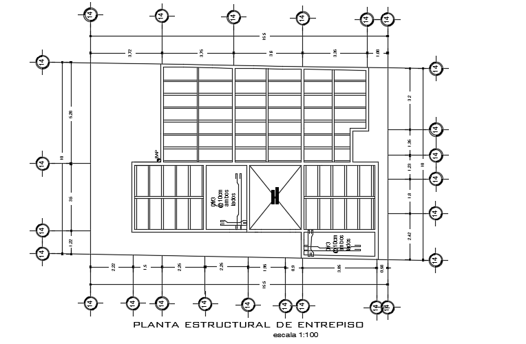 10x16m house plan entrepiso drawing is given in this file. This is two story house building. The length and breadth of the house plan are 10m and 15.5m respectively. For more details download the AutoCAD drawing file from our cadbull website.