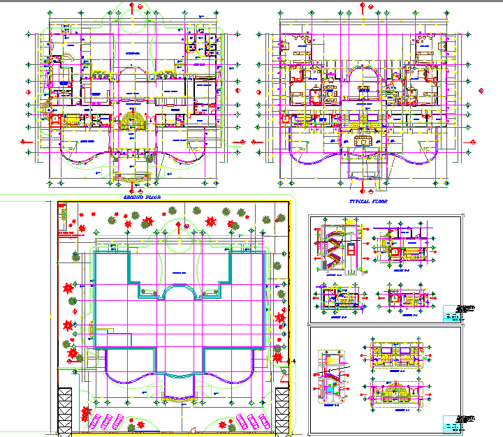 The architecture layout plan of foundation plan, floor level plan with furniture detailing, staircase plan, construction plan and structure detailing of luxurious Apartment Project.