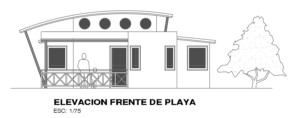 The front elevation view of the 8x8m 2bhk house building drawing is given in this file. On his floor plan, the living room, kitchen, dining area, master bedroom, kid’s room, and common bathroom is available. For more details download the AutoCAD drawing model from our cadbull website.