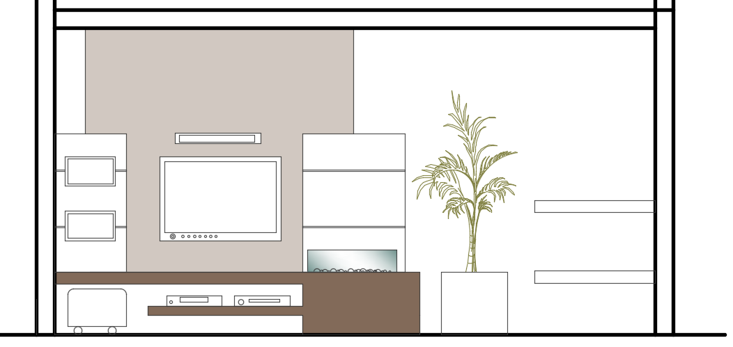 The back side interior view of the 5x5m living room plan is given in this cad model. The total height of the living room is 3.16m. On this living room, sofa set, and TV cupboard is provided. For more details download the AutoCAD drawing model from our cadbull website.