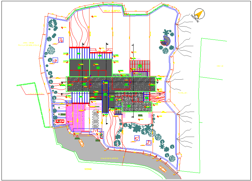 Design of family house plan dwg file with entry way with view of sculpture and view