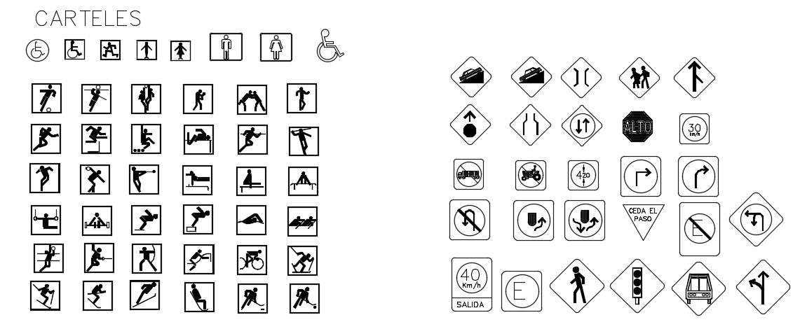 Human and traffic signal sign drawings are given in this file. For more details download the AutoCAD drawing model from our cadbull website.