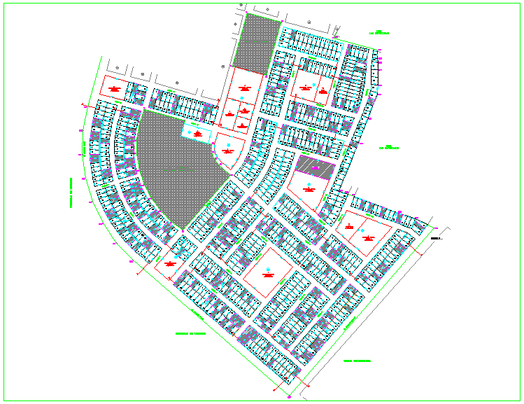 Housing area design with block view dwg file with flooring view and block with number of house with view of street and distribution of area.