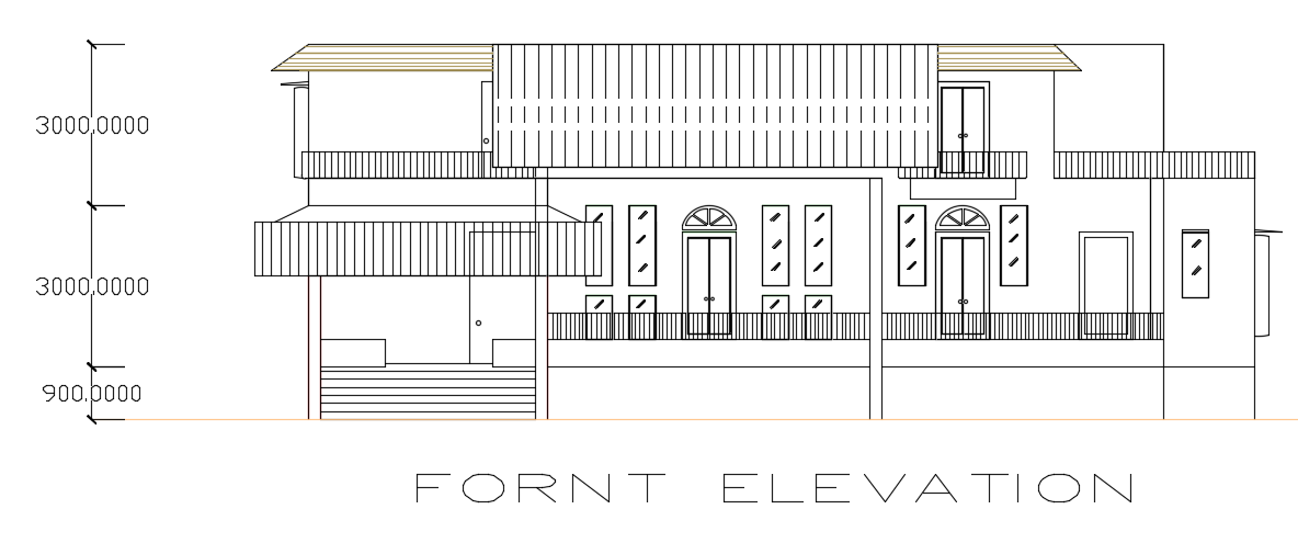 The front elevation view of the 16x18m house building AutoCAD drawing