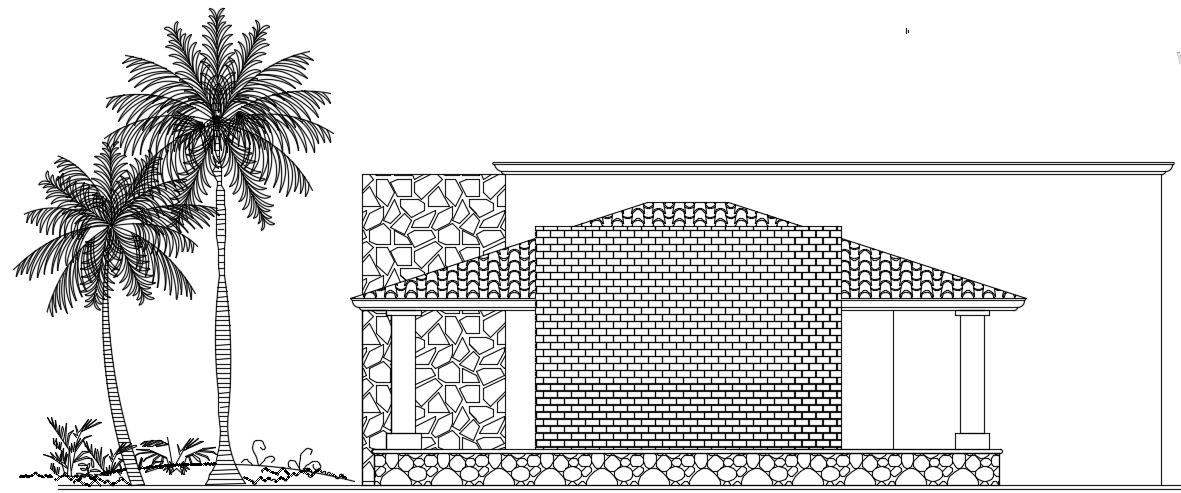 The west side view of the 12x12m single floor bungalow building is given in file. The total height of the bungalow building is 4.66m. On this ground floor, the living room, kitchen, dining area, open terrace, gent’s bathroom, ladies bathroom, master bedroom with the attached toilet, and palapa is available. For more details download the AutoCAD drawing model from our cadbull website.
