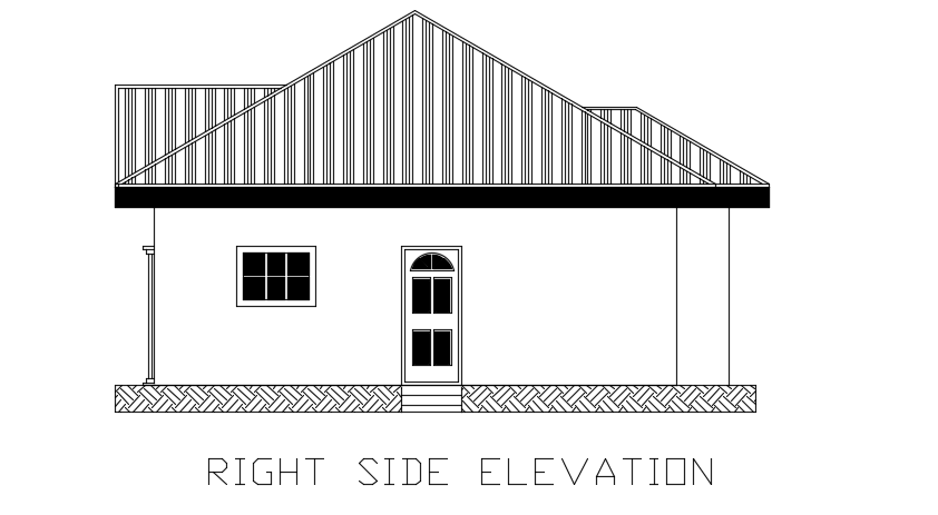 The right side elevation view of the 13x8m 3bhk single story bungalow house building drawing The right side elevation view of the 13x8m 3bhk single story bungalow house building drawing