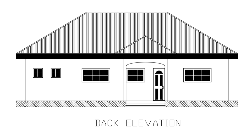 The back side elevation vie of the 13x8m 3bhk single story bungalow house building drawing is given in this file. On this floor plan, the sitting room, kitchen, dining area, lobby, master bedroom, kid’s room, guest room, and common bathrooms are available. For more details download the AutoCAD drawing model from our cadbull website.