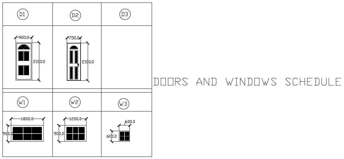 13x8m architecture house building door and window schedule is given in this drawing. Two main doors, and three window plans are given. The dimension is mentioned each door and window. For more details download the AutoCAD drawing model from our cadbull website.