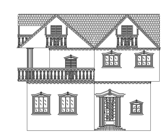 The front elevation view of the 15x15m duplex house building AutoCAD drawing
