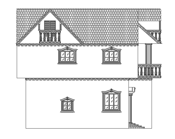 The right side elevation view of the 15x15m duplex house building AutoCAD drawing