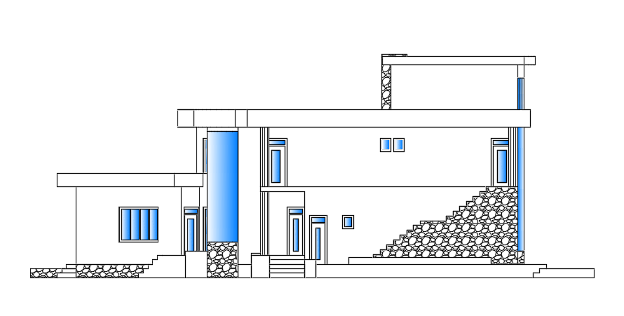 The left side elevation view of the 35x15m luxury villa building AutoCAD drawing is given in this file. This is two story villa building. On this ground floor, the garage, ware room, kitchen, dining area, water closet, living room, master bedroom with the attached toilet, and open terrace is available. On this first floor, living room, ware room, patio, the master bedroom with the attached toilet, kid’s room, guest room, common bathroom, common toilet, and open terrace is available. For more details download the AutoCAD drawing file from our website. Thank you for downloading the AutoCAD drawing file from our website.