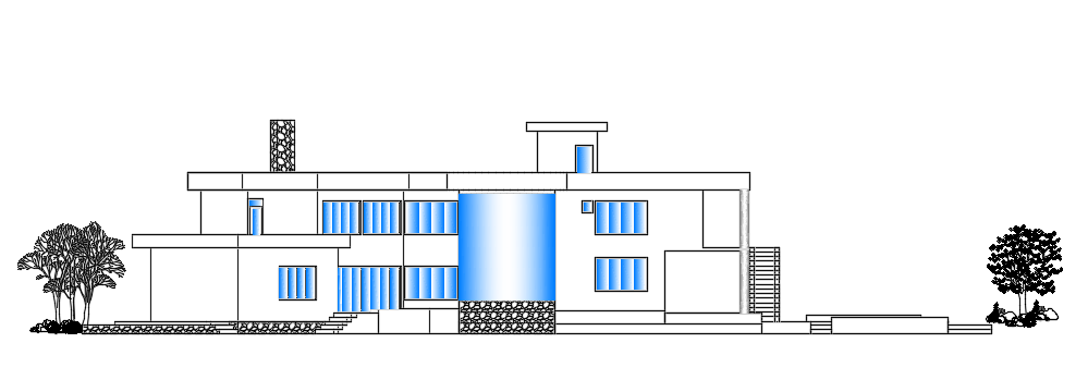 The backs side elevation view of the 35x15m luxury villa building AutoCAD drawing
