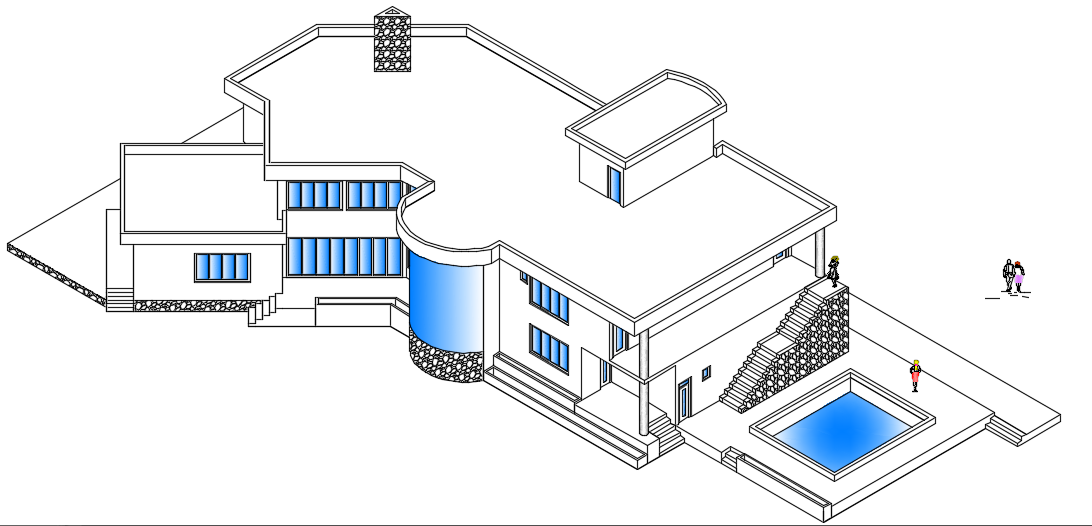 The top view of the 35x15m luxury villa building AutoCAD drawing is given in this file. This is two story villa building. On this ground floor, the garage, ware room, kitchen, dining area, water closet, living room, master bedroom with the attached toilet, and open terrace is available. On this first floor, living room, ware room, patio, the master bedroom with the attached toilet, kid’s room, guest room, common bathroom, common toilet, and open terrace is available. For more details download the AutoCAD drawing file from our website. Thank you for downloading the AutoCAD drawing file from our website.